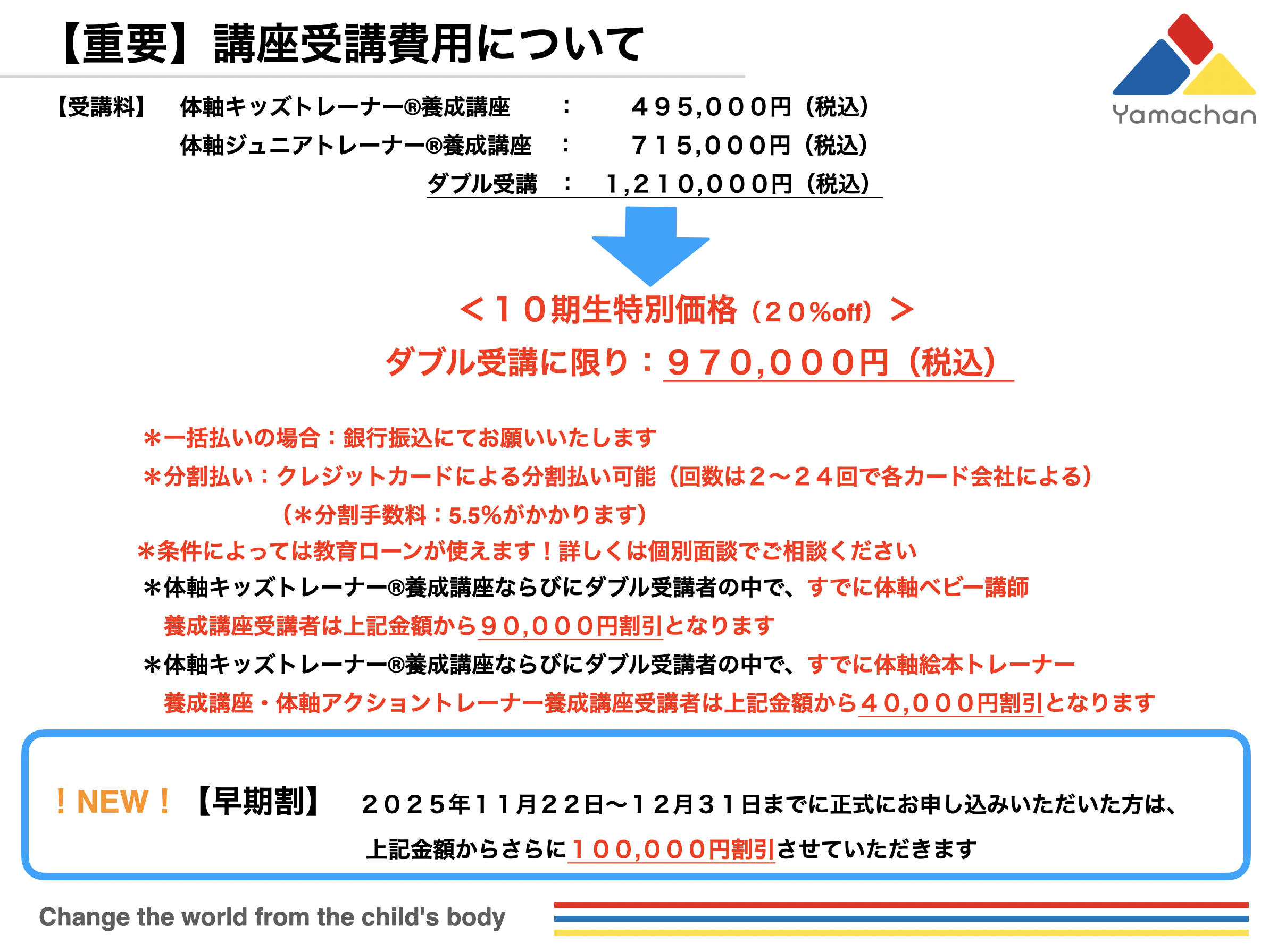 いえいえ、とんでもありません。金銭的な面もクリアして是非受講してもらいたいと思います。